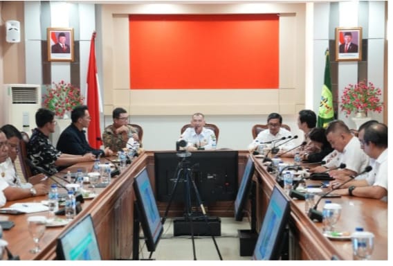 Wakil Bupati Natuna, Rodhial Huda didampingi Sekretaris Daerah, Boy Wijanarko Varianto bersama OPD terkait menyambut langsung rombongan Konjen Singapura di Ruang Rapat Kantor Bupati Natuna.