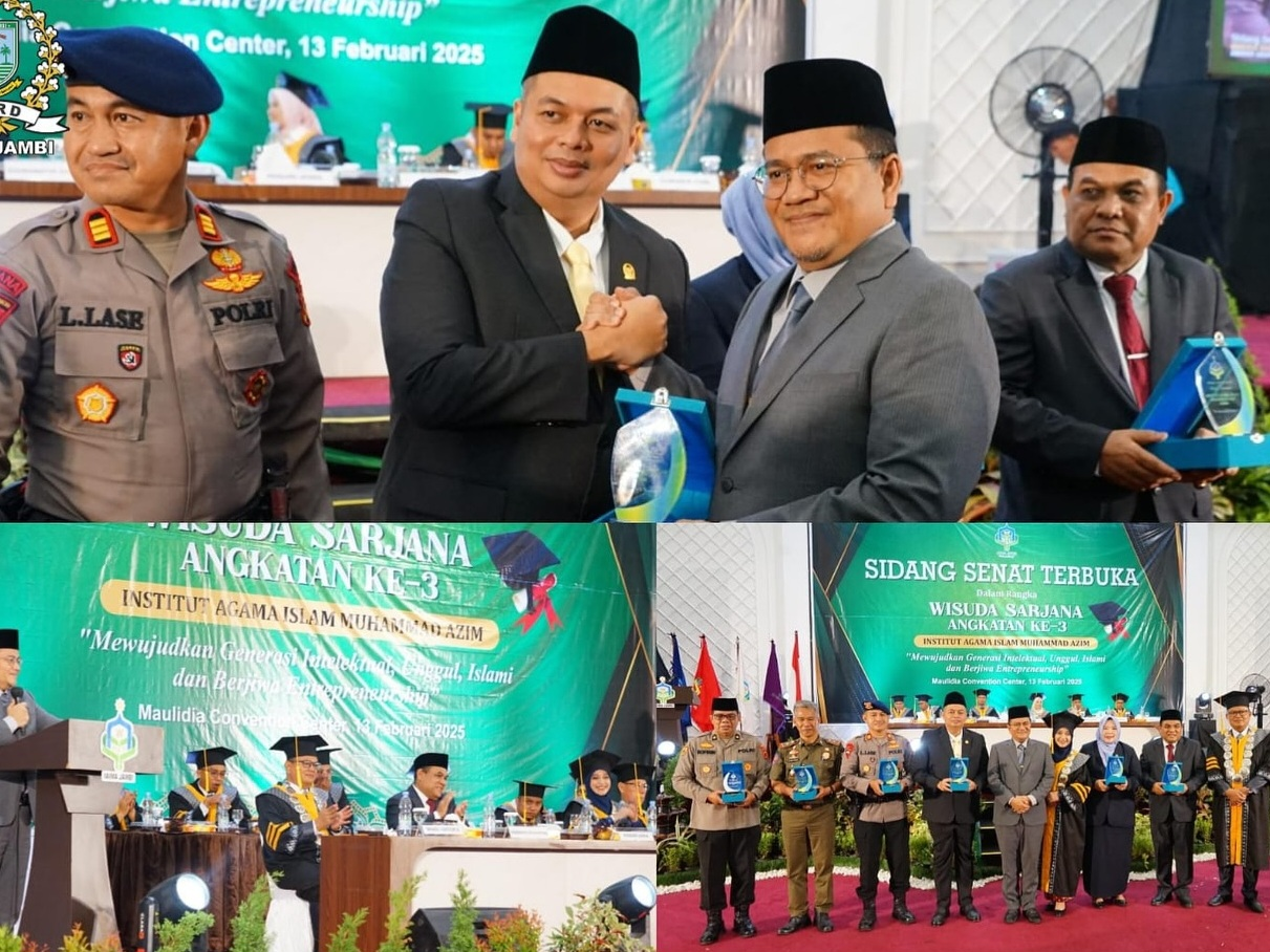 Jambi – Ketua DPRD Kota Jambi Kemas Faried Alfarelly, SE menghadiri acara Wisuda Institut Agama Islam Muhammad Azim (IAIMA) Angkatan ke- 3 yang berlangsung di gedung Maulidia Convention Center (MCC) Kota Jambi, pada Kamis, 13 Februari 2025.