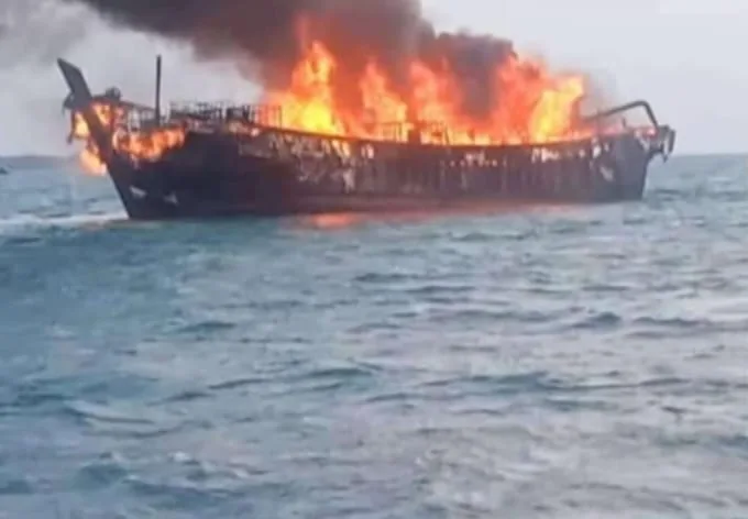 Kapal Penyuplai BBM Milik PLN Terbakar di Perairan Subi