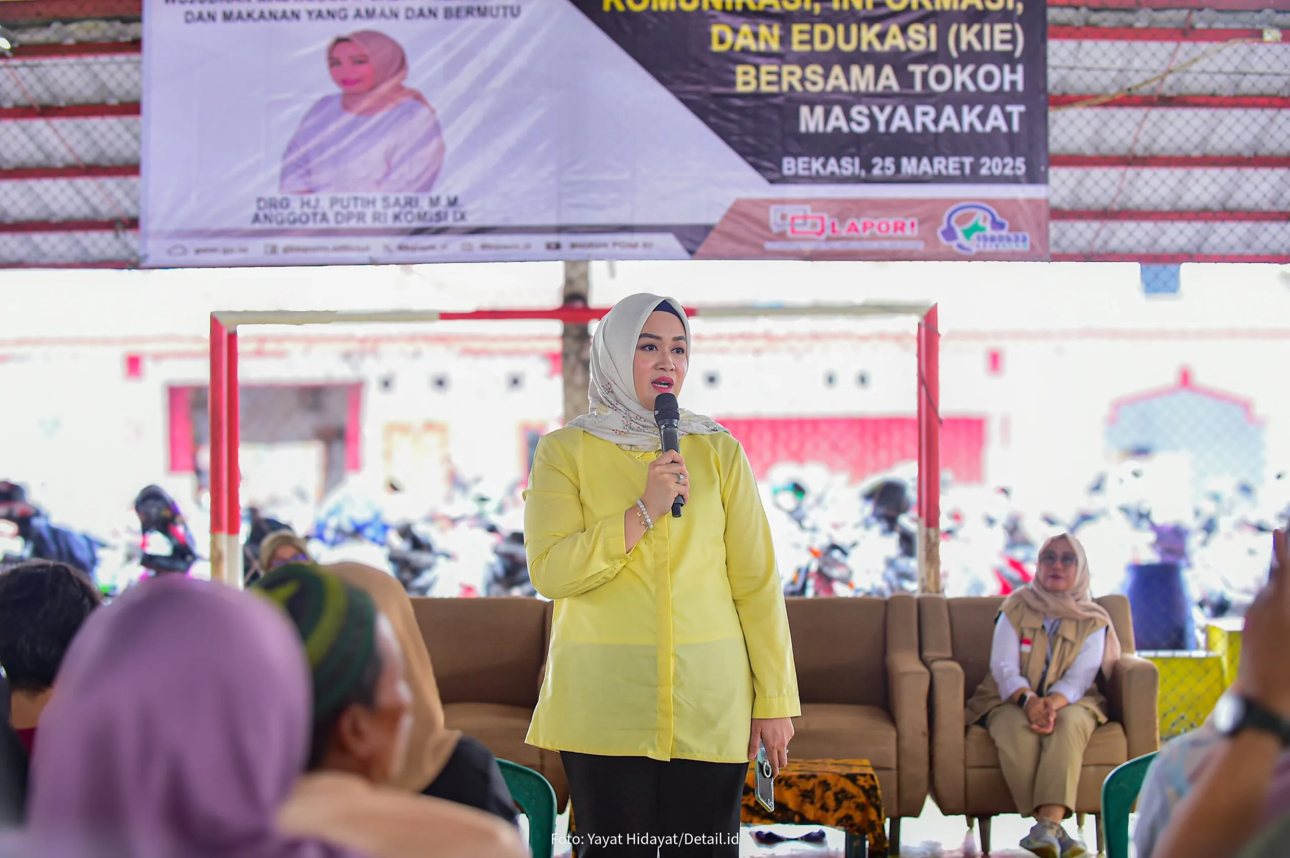 Bekasi – Anggota Komisi IX DPR RI Fraksi Partai Gerindra, drg. Hj. Putih Sari gelar sosialisasi pemberdayaan masyarakat melalui Komunikasi, Informasi dan Edukasi (KIE) obat dan makanan menggandeng Badan Pengawas Obat dan Makanan (BPOM).