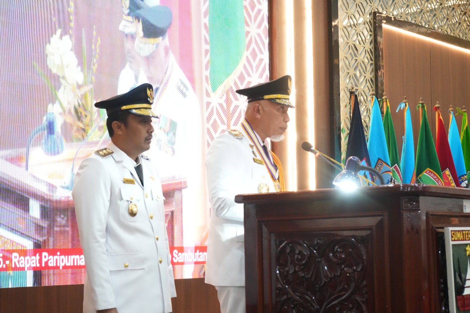 Padang – Gubernur Sumatera Barat (Sumbar), Mahyeldi Ansharullah menyampaikan pidato perdananya di hadapan DPRD Provinsi Sumbar pada Senin, 3 Maret 2025. Ia bersama Wakil Gubernur, Vasko Ruseimy menegaskan komitmennya untuk mengupayakan terwujudnya gerak cepat pembangunan di Sumbar.