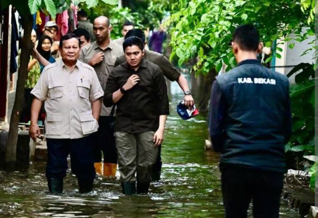 Bekasi – Presiden Prabowo Subianto mengunjungi lokasi banjir di RT 08/10 Kampung Tambun Impres, Desa Buni Bakti, Kecamatan Babelan, Kabupaten Bekasi pada Sabtu, 8 Maret 2025. Lokasi ini sebelumnya disebut-sebut nyaris tidak tersentuh oleh Pemerintah Daerah setempat.