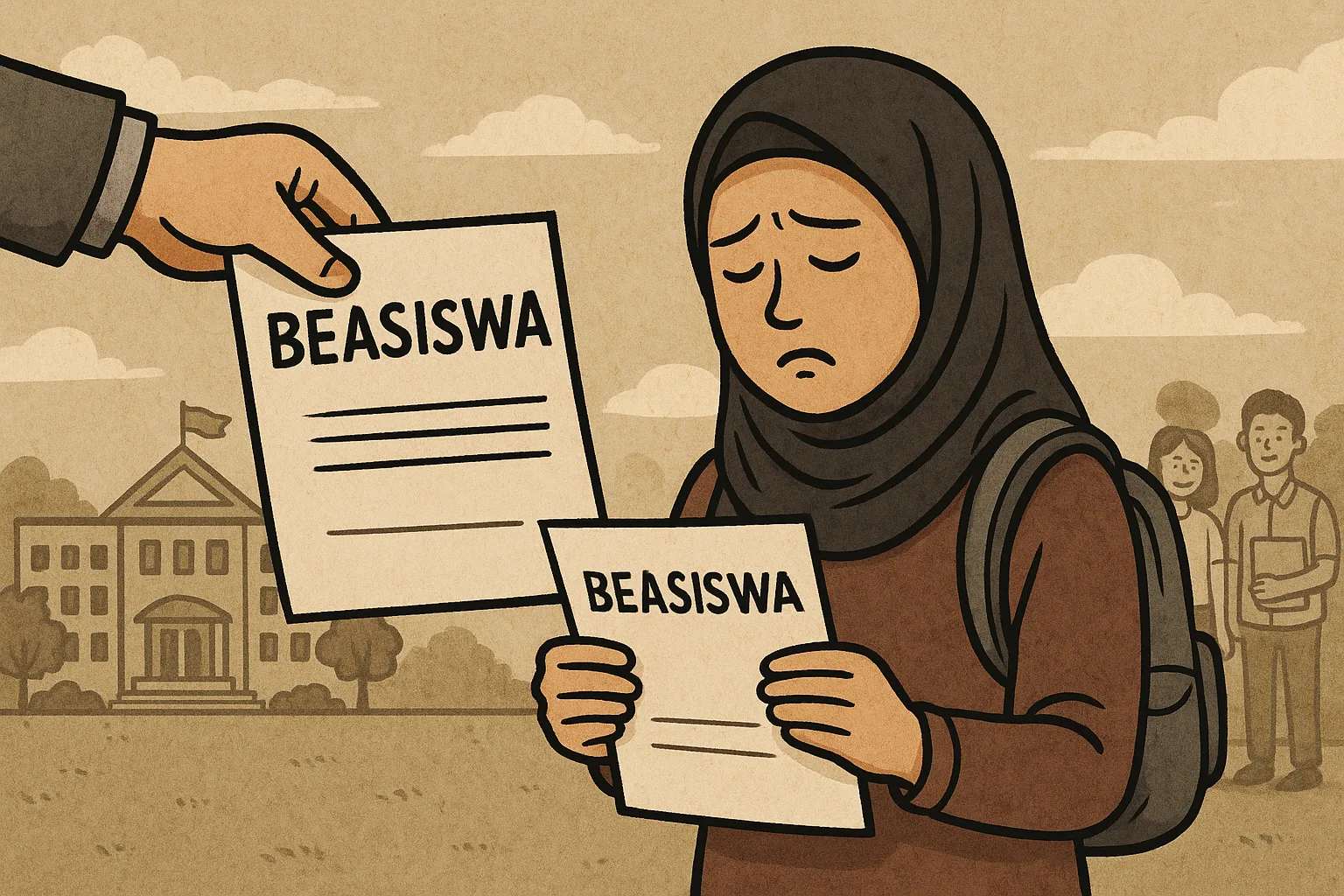 JAMBI – Di balik prestasi dan hiruk pikuk dunia kampus, masih ada kisah pilu yang jarang terdengar. Lala (nama samaran), seorang mahasiswi dari keluarga kurang mampu, menjadi potret nyata perjuangan anak bangsa yang ingin mengubah nasib lewat pendidikan, namun berkali-kali tersisih dari akses beasiswa.
