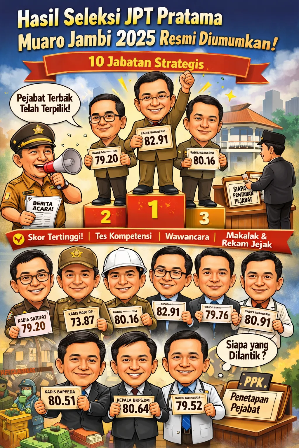 Dengan diumumkannya hasil seleksi ini, publik kini menantikan keputusan akhir PPK dalam menetapkan pejabat definitif yang akan mengisi posisi strategis dan menentukan arah kebijakan pembangunan Kabupaten Muaro Jambi ke depan.(Red-MRy)